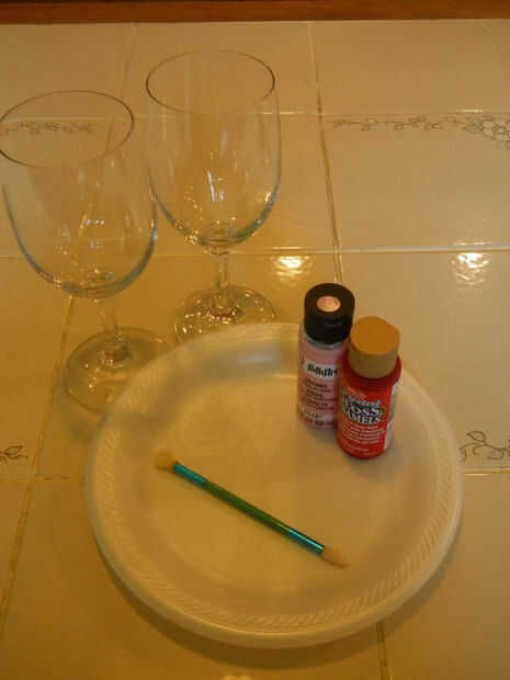 Copas de vino. En este tutorial son de una tienda de segunda mano. También recomiendo hacer pivotar por Walmart. Para regalos, uso su sistema básico de cuatro. Es cerca de $5.