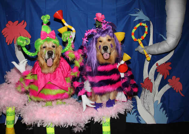 Decidimos vestir nuestros golden retriever Phoenix y grifo como que es de "Horton Hears a Who" este Halloween porque queríamos elegir algo lindo, colorido y caprichosa con que podríamos tener diversión. También siempre hemos amado Dr. Seuss y los mensajes que teje en sus historias. La que ha se han interpretado en algunas maneras diferentes de dibujos originales de Dr. Seuss, los especiales de animación y las películas más recientes. Queríamos hacer nuestra propia toma, obteniendo inspiración de todas las interpretaciones. Decidimos hacer un Seuss agradable buscando antecedentes para ir con ella.