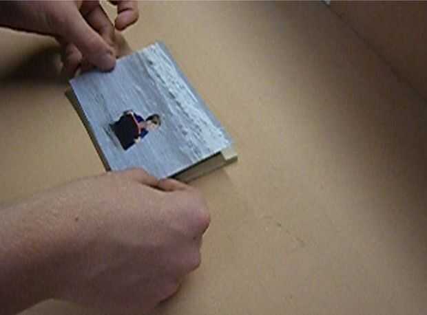 Poner tu foto en la madera y dejar seco durante 5 minutos para que la foto se pega a la madera.