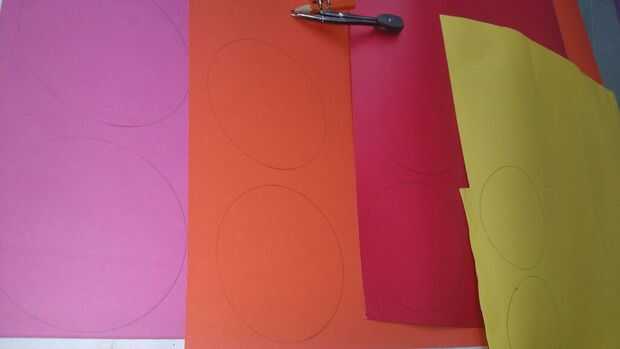 al principio dibuje algunos círculos y cortar. Luego realizar algunos alrededor de líneas de forma en los círculos y cortar según el pegamento de lines.put en ellos