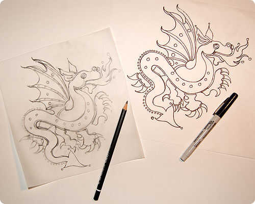 1. prelavado camiseta (en Synthrapol). Dibujar tu dragón o rastro de un libro de referencia sobre dragones. Ampliar el diseño, si es necesario, a la medida deseada para tu camisa. Hay muchas maneras de hacer esto - Xerox, fotocopiadora, computadora, Projectascope (#PROJ), etc.. Dibujar el diseño con un lápiz de grafito o un marcador sharpie negro. Deje que el dibujo del marcador seco para que no transfiere la tinta a su camisa.