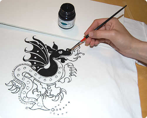 6. pintura de partes del cuerpo negro del dragón con #LN2 Neopaque tela pintura en negro 588.
