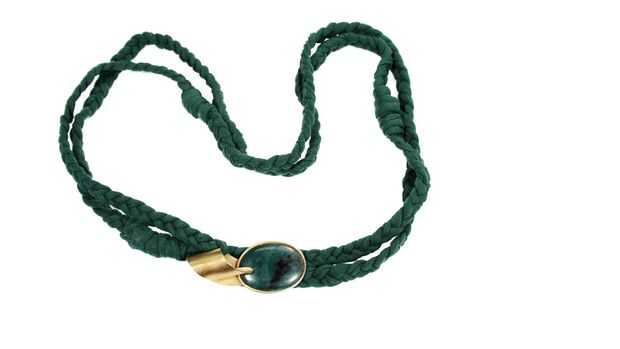 Esta pieza única se crea por trenzado, pegado y atando su camino a lo largo de su base de camiseta con Kimra hasta que haya dominado su arte y reciclado de una camiseta no deseada al mismo tiempo! Diseño "Verde" sólo en JewelryLessonVideos.com.