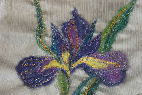 Uso el hilo abigarrado a mano libre bordan. Hacer primero el contorno y luego rellene las partes del centro, la tela con las manos atrás y adelante para que ir al menos dos veces en cada puntada y permitir que el subproceso se acumulan. Direcciones en el que se mueva la tela depende del dibujo, tratar de imaginar las líneas. Se puede incorporar del grano, coser sobre hilos y cintas, usa tu imaginación. Quería mantener tipo de simple.