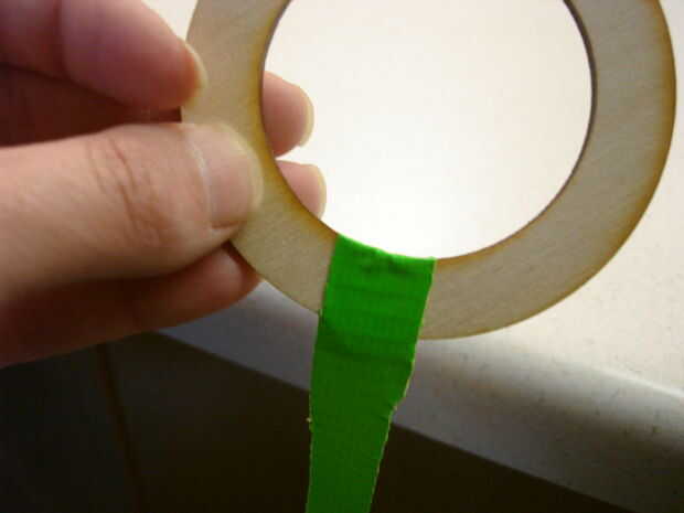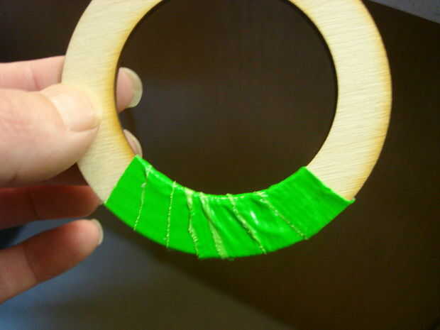 Utilice las tiras para envolver alrededor del anillo que está utilizando. Esto ocultará el color del anillo, por lo que fácilmente puede utilizar cualquier color de plástico, metal o madera para la base para el proyecto.
