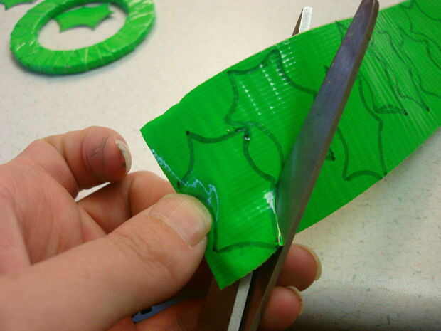 Use las tijeras para recortar las hojas. Quizá quieras adornan un poco pero nos encontramos con que el marcador no alojarte en la cinta de conducto bien.