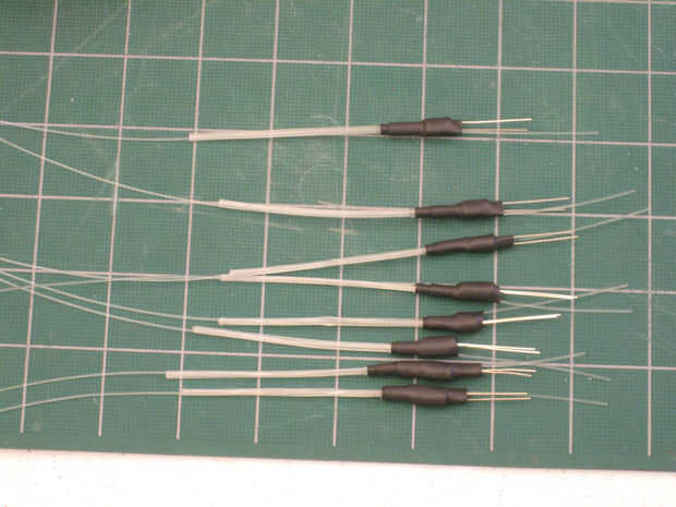 - ATENTAMENTE tubería lo usando del encogimiento (utilicé una vela) en una estrecha y hacia adelante y hacia atrás movimiento (tienes que jugar con esto ya que la fibra es muy sensible al calor. Su un dolor en el trasero, pero creo que resultó impresionante).