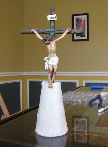 -Una vez finalizada la base, inserte el crucifijo y el topper del árbol comienza a tomar forma...
