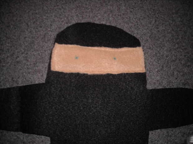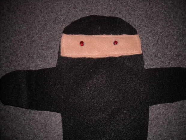 Luego en la otra pieza de su ninja coser la pieza color carne de material donde quieras los ojos al ser, puesto que no cubre completamente toda su cara. O al menos no de Radnor.