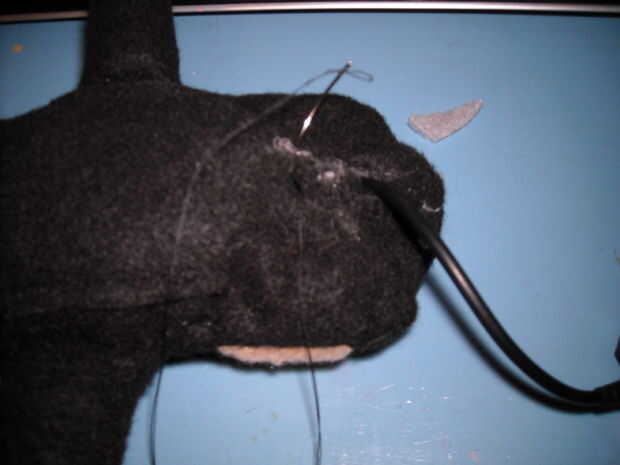 Coser la herida en la parte posterior de la cabeza de ninjas y meter las pilas en el bolsillo en la espalda. La parte superior del árbol entra en la otra mitad del bolsillo en la espalda. Si las pilas en el bolsillo en su hacen hacia atrás la parte superior de la curva del árbol sólo puede conectar las baterías en el árbol detrás de él.