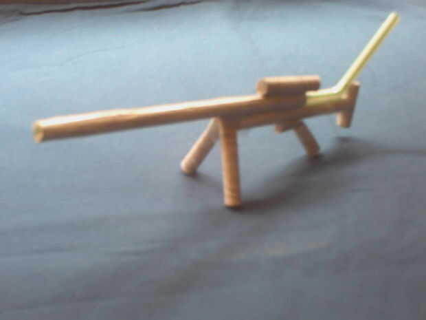 ok lo he hecho! ahora se puede disparar a spitwads! Aquí es cómo. necesita papel, tu boca, una paja bendy, un papel sr-v1 y una madera dowell. al fuego spitwad puesto al final del cañón (paja) empujar medio a 3/4 bajando con la madera dowell. entonces dispara!