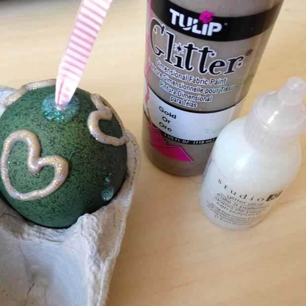 Decorar el huevo con pegamento del brillo.
