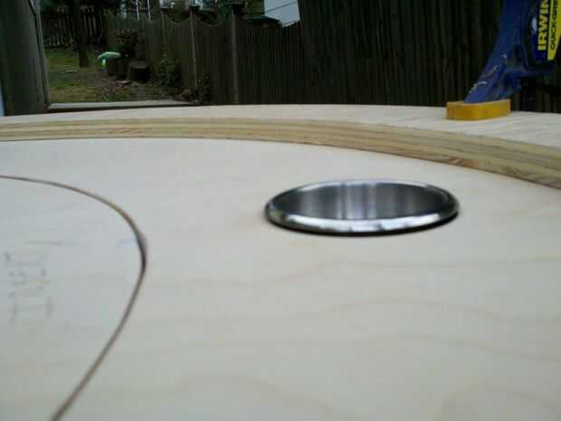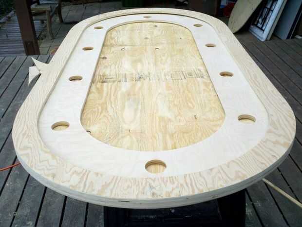 f. (foto 6) ahora su tiempo para hacer una preliminar ajuste de la tabla con el corte de ahora BASE, pista y carril. Juntos no? Su finalmente empezando a parecer como una mesa de póquer.
