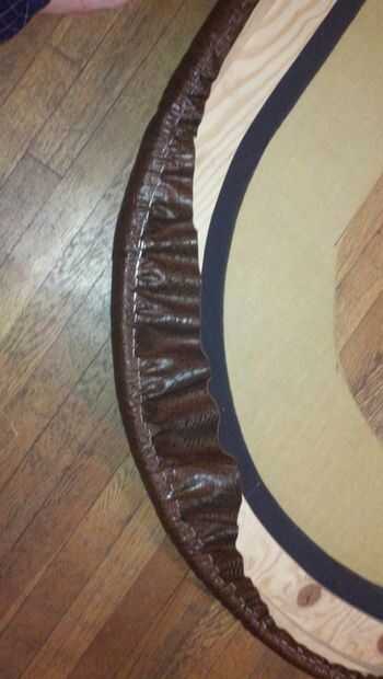 j. (cuadro 26) grapa interior borde. Comenzar con los bordes rectos y grapa el borde interior de la misma manera que hiciste el borde exterior. Asegúrese de que todas sus grapas en la parte inferior de la pieza superior (principal) del carril (es decir. no dejes que este vinilo a atravesar la pieza de adorno de carril. Luego hacer el interior borde del arco usando la misma técnica divisoria. Tire de una de las solapas y engrape a continuar de una manera divisoria. Grapa desea Asegúrese de que todas sus aberturas grapas hacia abajo en el borde inferior del travesaño y no visible desde el lado y la parte superior. Puede que necesite extras grapas en el vértice del corte. Cualquier corte izquierda sin protección será un punto débil que puede romperse más tarde. Hay un montón de tensión en el vértice del arco, así que ten cuidado. Encontré que tenía que hacer una preliminar básico quitarla y restaple como la tensión fue relevada por la perforación de segmentos adyacentes. Hay un poco de manipulación aquí, así que tomarlo lento y no tenga miedo de tirar un elemento básico a (mantener un par de alicates de punta útiles). Terminé colocando dos filas de grapas alrededor del arco, uno para garantizar las aletas y otra fila más cercana al borde para garantizar todas las rendijas. Una vez más, el objetivo es conseguir todas las ranuras V detrás de la primera fila de grapas.