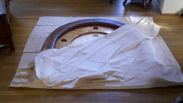 Aunque esto es un paso opcional, usted probablemente tendrá una cubierta para proteger su trabajo mientras se encuentra en el sótano/armario. Una solución es simplemente envolver en un paño grande, pero dio un paso más. Usé una gran lona (que era más conveniente como me estaba haciendo múltiples viajes a la ferretería y probablemente más barato que una muselina de pesado que habría encontrado en la tienda de tela). Es un diseño básico. Que cortar a la tela y coloca dos costuras para hacer una especie de "envolvente" con una aleta en la parte superior. A continuación poner un dobladillo en las solapas superiores y añadido velcro en la solapa para sostener hacia abajo. Hice tres de estos sobres para cada una de las piezas de dos tabla y el inserto. Esto supone por supuesto que tienes una máquina de coser y algunas habilidades básicas de costura. Un tutorial de costura detallada está fuera del alcance de este instructable.