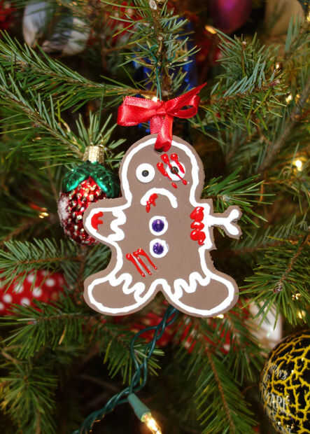Una vez tengas suficiente hombre gingerdead amenaza un pequeño pueblo, es hora de arcos! Elegir la cinta de color que trabaja para usted (rojo siempre es bueno). Cortar tiras lo suficiente a hilo por el agujero y ATA en un arco pequeño. Colgar tu creación en el árbol y TA-DA, el Apocalipsis ha comenzado! El hombre gingerdead también mirada agradable decoración regalos, colgándose el manto o visitar el pesebre.