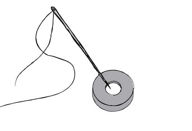 Punta. un nudo en el extremo del hilo y cortar el extremo. Una vez que ha tomado la primera puntada puede utilizar un poco de esmalte de uñas para sellar el nudo.