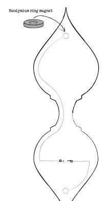 Usando el hilo conductor para coser el imán en lugar uniformemente a lo largo de todos los lados.