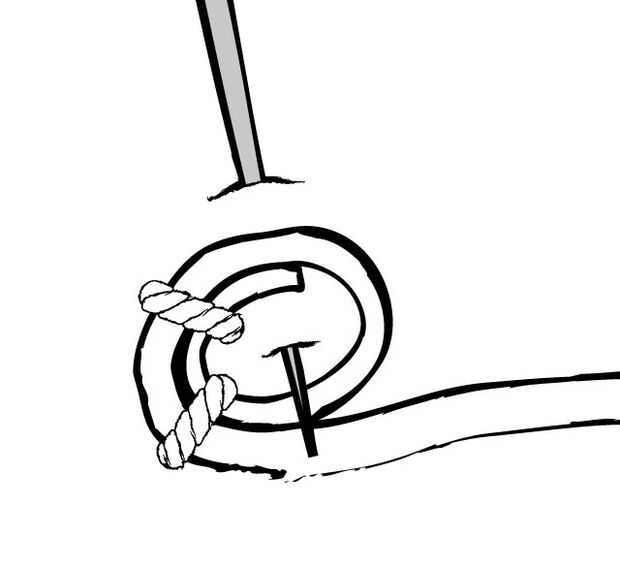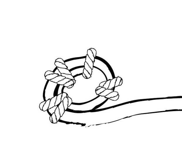 Puntada alrededor del bucle varias veces para hacer una buena conexión sólida con el hilo conductor.