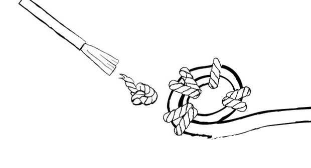Ate en un golpe y corte el hilo sobrante. Consejo: Uso claro uñas en el nudo para evitar la batalla. Deje que se seque.