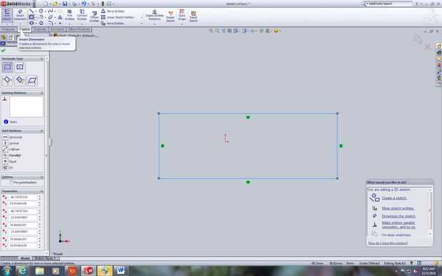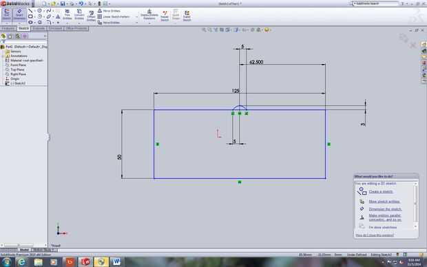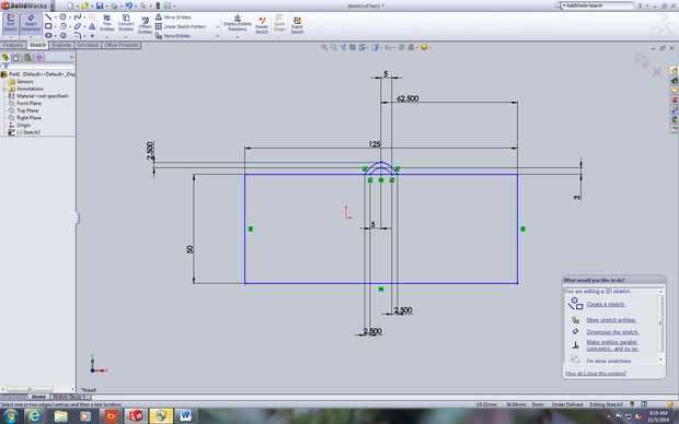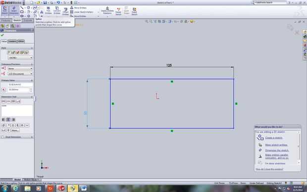 Desde el adorno va a parecer una tienda tenemos que tener una base para la tienda para venir de. En primer lugar, crear un boceto y elegir el plano frontal. Crear un rectángulo. Luego seleccione dimensiones inteligentes y haga clic en cada dimensión para modificarlos a los valores mostrados en las imágenes. A continuación, utilice la herramienta spline para hacer el arco en la parte superior. Crear otro arco concéntrico. Luego utilice la herramienta de dimensión para obtener todas las dimensiones y ajustarlas a los valores especificados en los cuadros. Luego, tomar el bosquejo entero y extruyelo asegurándose de seleccionar el rectángulo y el arco en la parte superior.