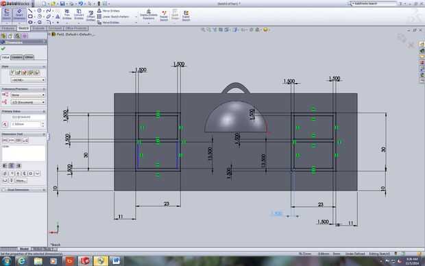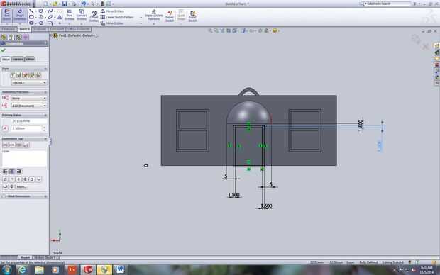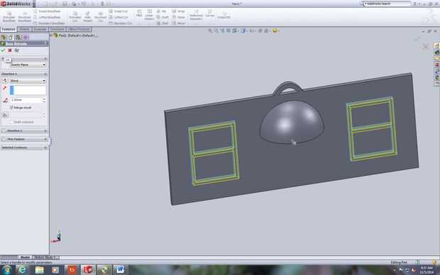 Esto es bastante complicado pero con toda honestidad es sólo un montón de dimensiones. Primero dibuja dos rectángulos sobre la faz de los ornamentos y establecer sus dimensiones en los valores previamente calculados. Entonces. dibujar los rectángulos interior y todas sus dimensiones en los valores que se especifican en los cuadros. Es un lote de dimensiones pero hace el producto final mirada mucho más limpia. Luego, sacar las ventanas y puerta de 2,5 mm.