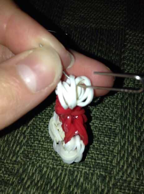 estos son los materiales que usted necesitará:-una bolsa de pretzels-una bolsa demalvaviscos de pequeño-un envase de glaseado blanco-un envase de sprinkles rojoPaso 1: Lo primero que va a hacer es sumergir el pretzel en el glaseado blanco. (Sugerenci