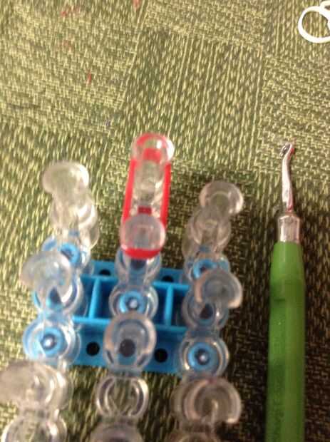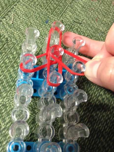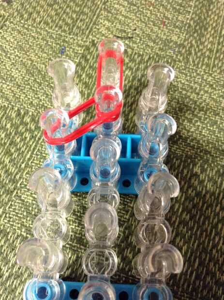 Lugar sus bandas como se muestra en la imagen recuerden que usted está usando dos bandas para la parte roja del sombrero.