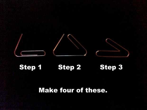 Uso 4 clips grandes para hacer los brazos diagonales. Despliegue y les rebend como se muestra a continuación.