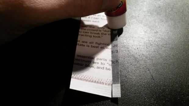 Empezar a plegar y pegar en 3/16". Comprar el tiempo que usted llega al final de la tira mide 6 "x 1/4"