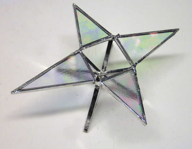 Construido sobre la idea en este WikiHow.Hacer una estrella de Navidadhttp://www.wikihow.com/make-a-Christmas-Card-Star para el registro, es un icosaedro:https://en.wikipedia.org/wiki/icosahedronTiene 20 caras de triángulos.La Moravia más común estre