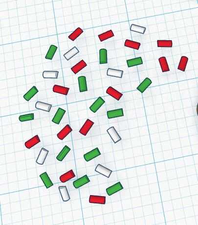 Estas son la parte más difícil. En primer lugar, en la foto, no hay sólo una, sino tres grupos de chispitas. Esto es para ayudar con la impresión en color, si esta opción está disponible. Esto todo se debe completar en la base de galleta original. Cada aspersión tiene la misma forma cilíndrica mitad techo; sin embargo, cada uno es en su propio plano, un lugar horizontal y conectado con la cookie. Se deben agrupar al azar suficiente para que los colores ser creíble, así que pasar por poner todos los sprinkles en, volver a través y reagruparlos dependiendo de lo que parece el mejor.