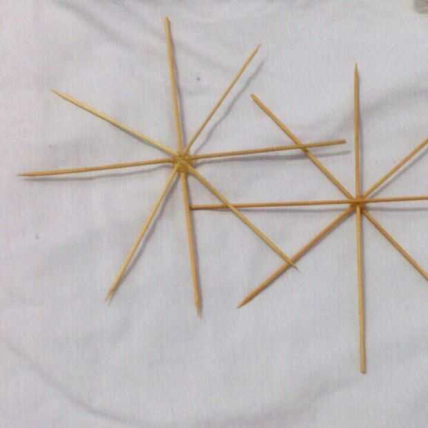 Pegamento juntos por otro 2 palos de madera y recibe 8 cara estrellas. Asegúrese de que pegarlo en el centro del palo. Que mantenga juntos durante unos 15 minutos hasta que el pegamento es firmlybstick.the madera juntos.