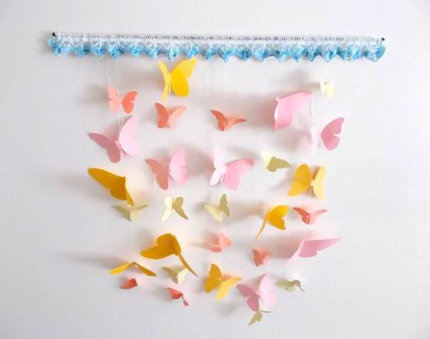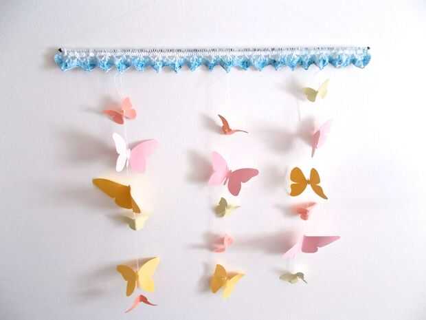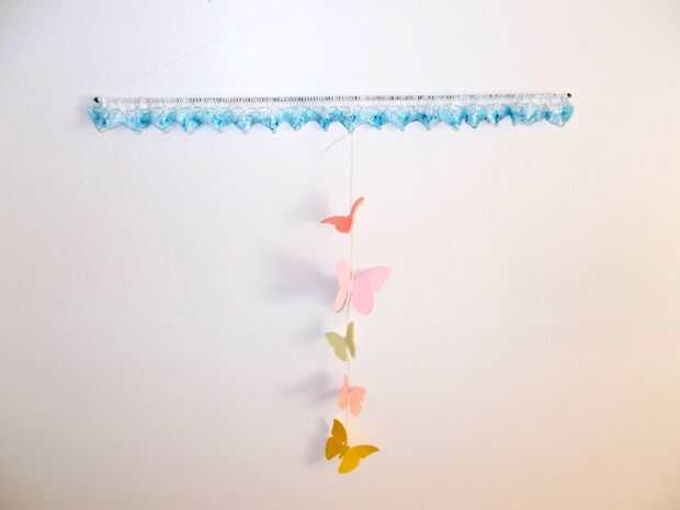 Comenzar agregando cadenas desde el medio hacia fuera. Tomar una cadena de mariposas y lazo en la parte superior del cordón a través de la punta del centro de punto de ganchillo (o sólo lazo sobre la barra, si no de ganchillo). Luego haga dos nudos para fijar la cadena. Esconder la cola como escondió las colas para el crochet trim (quinta imagen del paso 5). Enjuague y repita hasta que todas las cadenas de la mariposa se unen.