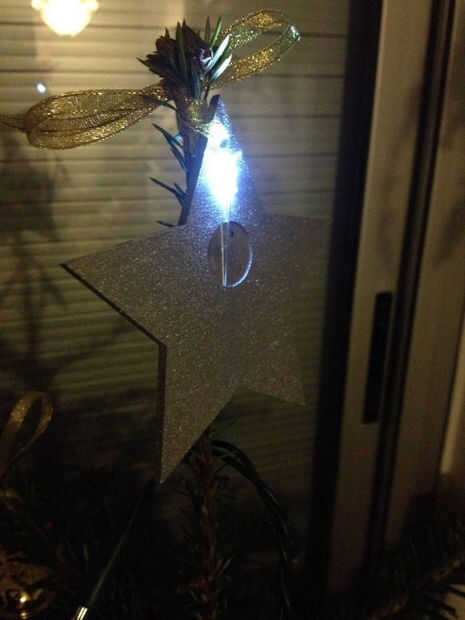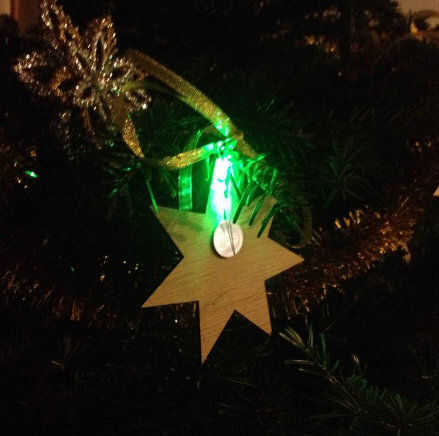 Se ha añadido luces hackeando el diseño clásico de LED Throwie. La batería (CR2032) se encuentra en una abertura en el cuerpo de la decoración y un LED en arriba. Ninguna cinta, ninguÌ n pegamento... Me gusta cómo resultaron.