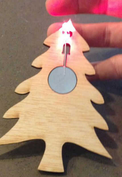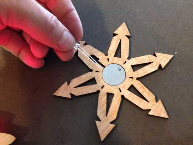 Una vez que hayas cortado las formas, colocarlas sobre una superficie plana y suavemente empuje la batería en el orificio para que permanezca en su lugar con fricción. Tenga cuidado aquí - contrachapado de 4mm no es fuerte y es fácil de romper si no eres cuidadoso