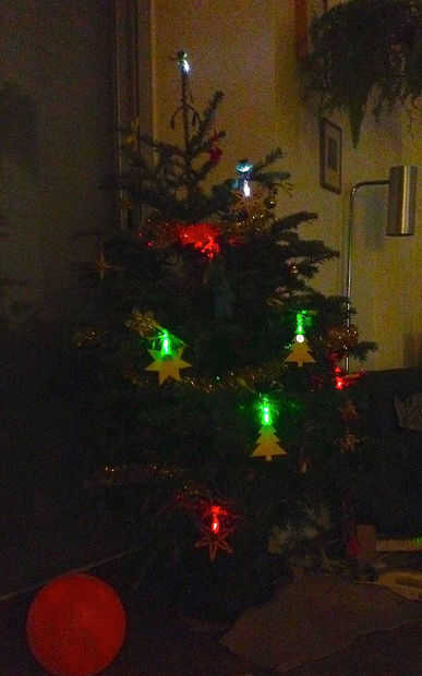 Usé algunos cinta dorada para colgar en nuestro árbol. El LED ultrabrillante es mucho más brillante que las luces normales y tienen un bonito clara luz.