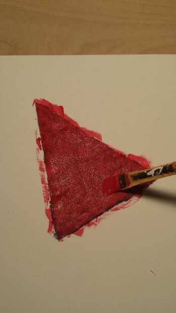 • Después de que el pegamento se haya secado, pintar los dos triángulos Unidos rojo (si la tela ya no es roja).