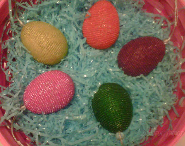 Hice este lote hoy, justo a tiempo para la primavera! Hierba verde, sol amarillo, naranja zanahoria, ciruela morada y rosa jellybean huevos tienen cientos de diminutas de vidrio mano de cuentas ensartadas en cada uno. Son bastante laborioso pero el resultado final merece la pena. Fotos nunca hacen a justicia a la forma en que la chispa!