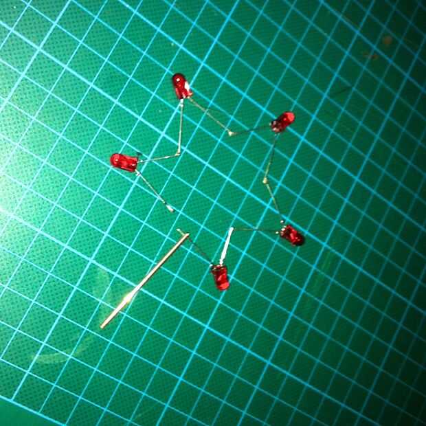 - Doble los cables de LEDs en un ángulo para que conductores adyacentes cruzan.