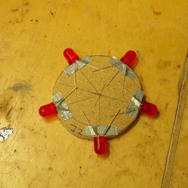 Conecte los extremos de la estrella a los postes de la batería. Cuenta la polaridad del LED y la batería! Si los LEDs encienden: viva. Si no: