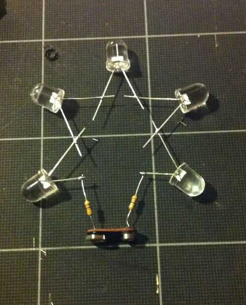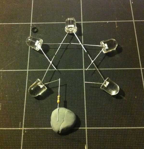 Montar el clip de batería con estrellas cuidadosamente en una batería. Ahora estamos listos. Otra vez :-)