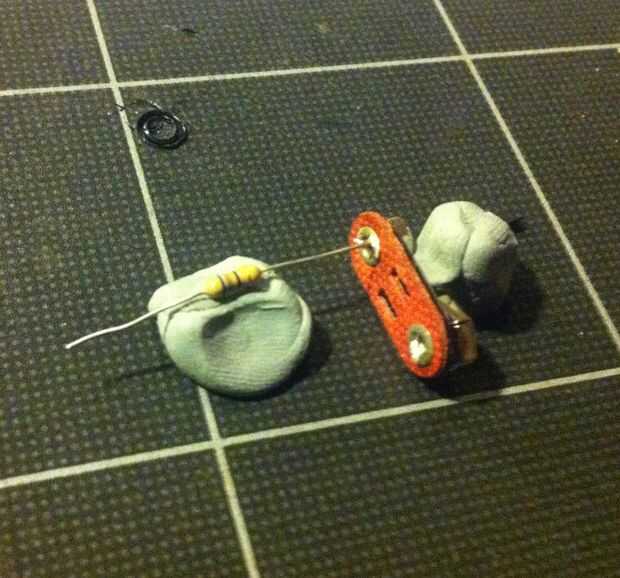 - Soldar una resistencia de 60 ohmios al conector pequeño.