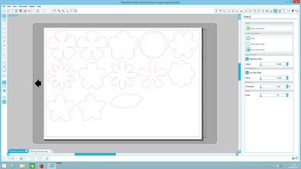 En primer lugar, creé corte archivos usando imágenes prediseñadas y mis propias formas diseñadas (puede puede crear formas en el estudio de la silueta, pero prefiero trabajar con otro software de imagen, a continuación, importarlo en estudio). Puede importar archivos vectoriales como-es, o puede importar otros archivos de imagen a continuación, utilice la función trace , entonces trazas seleccionar área entonces trazar el borde exterior para crear un archivo de corte redondo exterior.