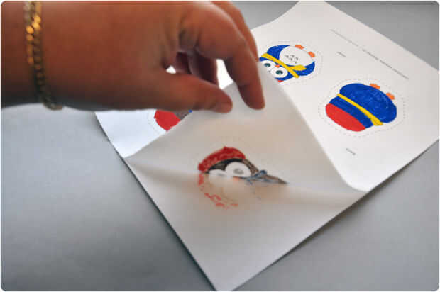 Sistema de calor sus ornamentos con un planchado en seco. Siga las instrucciones de ajuste del calor para los marcadores y pintura que se decidió utilizar.