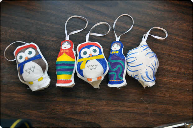 Terminar sus ornamentos. Resultan su derecha adornos cuidadosamente. Para darles forma un poco usar el dedo para frotar las costuras del interior.