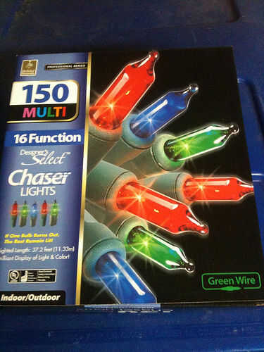 2.) A multi color chaser luz con luces por lo menos 140. Usted puede encontrar usuially en wallgreens durante la época de Navidad.