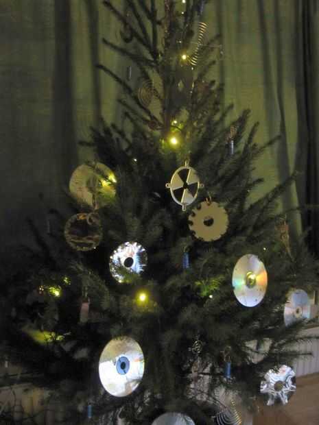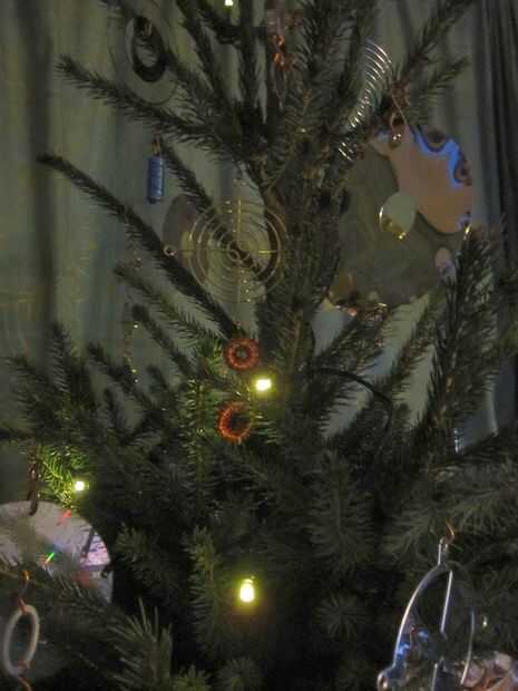 Por último, aquí hay algunas fotos del árbol. Verás que hay unos CDs en mi árbol, también; Has sido microwaved para conseguir un efecto craquele agradable.