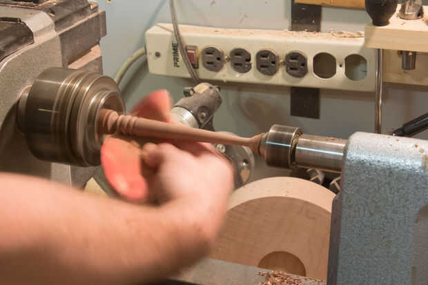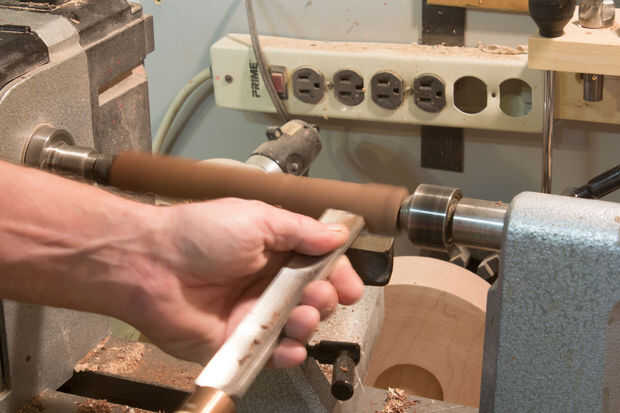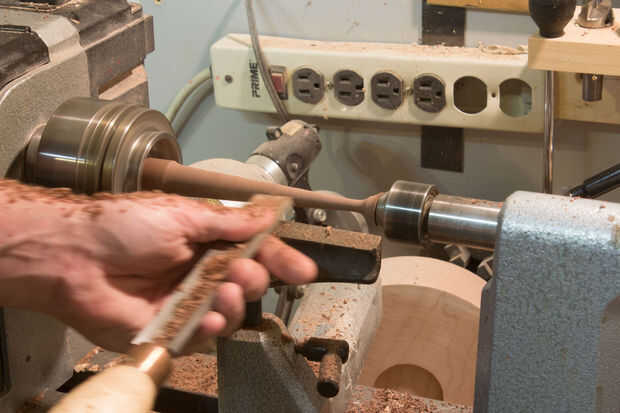 Trabajar desde el final de la acción de la cola hasta el extremo de la cabeza-acción. Haciendo remates, el stock obtiene muy muy delgado y puede fácilmente dividir y desarmarse mientras que da vuelta. Si llegas al final del cabezal para licuar y luego tratar de tomar el pesado necesario cortar en el extremo más delgado, más definitivamente romper y arruinar su proyecto.