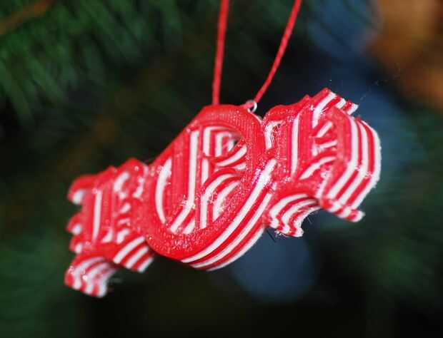 Este ornamento es la forma de las iniciales del Presidente y de colores como dulces tradicionales de cinta de Navidad. Se realizó con PLA biodegradable en una impresora MakerBot. Filamento simple y barato libre de pigmento parece cristal o hielo. Cambiar periódicamente el filamento para obtener los diferentes colores reduce la posibilidad de un atasco de filamento. El ornamento no necesita laser selectivo que sinteriza o cualquiera de las otras técnicas más costosas. Se hará una impresora simple filamento. De hecho, estas impresoras hacen muy bien cuando uno quiere capas paralelas de diferentes colores. ¡Felices Fiestas!